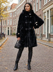 Black Buttoned Fur Coat